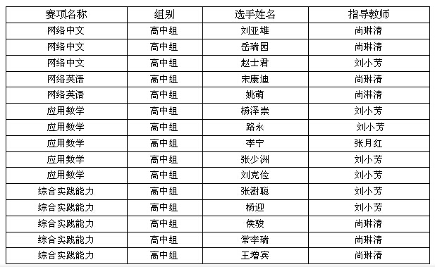 在6月25日全國NOC大賽組委會(huì)公布的“第十二屆全國中小學(xué)信息技術(shù)創(chuàng)新與實(shí)踐活動(dòng)決賽入圍名單”中,河北省近千人參加網(wǎng)絡(luò)學(xué)習(xí)類(網(wǎng)絡(luò)中文、網(wǎng)絡(luò)英文、應(yīng)用數(shù)學(xué)、綜合實(shí)踐)競賽,共有28名學(xué)生入圍全國決賽:網(wǎng)絡(luò)中文7人、網(wǎng)絡(luò)英文8人、應(yīng)用數(shù)學(xué)7人、綜合實(shí)踐6人。我校實(shí)力驕人,共有15名學(xué)生入圍全國決賽,其中網(wǎng)絡(luò)中文3人,網(wǎng)絡(luò)英文2人,應(yīng)用數(shù)學(xué)5人,綜合實(shí)踐能力5人。