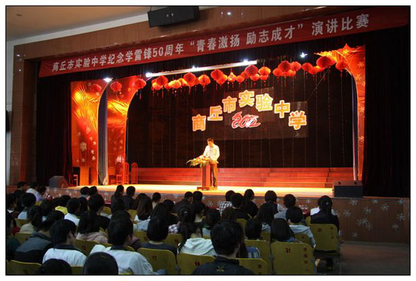 2012年4月26下午,商丘市實(shí)驗(yàn)中學(xué)三樓禮堂掌聲雷動(dòng),喝彩不斷。由校團(tuán)委主辦、高一年級(jí)承辦的紀(jì)念學(xué)雷鋒50周年“青春激揚(yáng)、勵(lì)志成才”演講比賽決賽正在這里隆重舉行。學(xué)校楊典臻校長(zhǎng)、武月書(shū)記等領(lǐng)導(dǎo)出席了本次比賽;