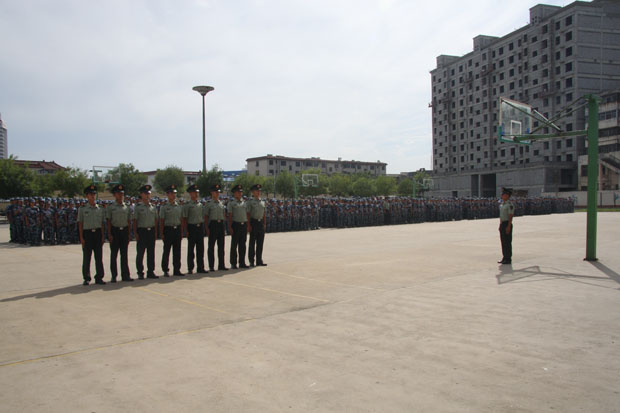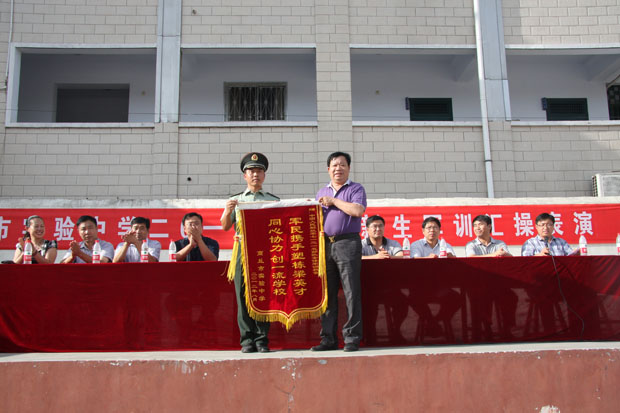 2012年8月22日下午,商丘市實驗中學(xué)隆重舉行了高一新生軍訓(xùn)匯報表演。學(xué)校高一千余名新生參加了本次軍訓(xùn)匯操表演。主席臺就座的嘉賓和學(xué)校領(lǐng)導(dǎo)有:駐商高炮旅袁紅松營長,學(xué)校校長楊典臻,學(xué)校黨總支書記武月,學(xué)校副校長徐濤、陳建軍、田壯禮、馬良軒、康凈雪,工會主席劉道常,政教處劉繼全主任,匯操表演由政教處陳傳宏主任主持。