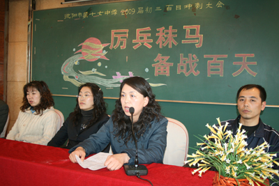 3月20 日,沈陽市第十七中學(xué)九年級全體師生及家長隆重召開 “厲兵秣馬 備戰(zhàn)百天“中考百日沖刺動員大會。大會由九年級組長邢利麗主持。會上教師代表劉雯對學(xué)生提出殷切希望,并表示竭盡所能,為學(xué)生的美好明天獻出無悔的努力。家長代表發(fā)言,對學(xué)校和教師的努力和默默奉獻表示理解與感謝,并決心在百天沖刺的時間里,做好孩子的“后勤工作”。學(xué)生代表發(fā)言,他們表示不辜負學(xué)校領(lǐng)導(dǎo)和老師的厚望,刻苦鉆研,勇于拼搏。劉兵書記對九年級的教師和全體學(xué)生提出了殷切希望,希望九年級的同學(xué)們以高昂的斗志迎接人生中的這一重大挑戰(zhàn)并對本屆中考備戰(zhàn)工作提出了具體的建議及方案。
