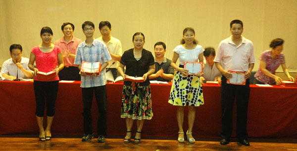 9月8日下午,我校在雪卿藝術(shù)館隆重舉行慶祝教師節(jié)暨表彰大會(huì),大會(huì)表彰一批在2008—2009學(xué)年度教書(shū)育人工作中做出顯著成績(jī)的先進(jìn)集體和先進(jìn)個(gè)人。這次受表彰的先進(jìn)處室5個(gè)、先進(jìn)級(jí)組2個(gè)、先進(jìn)科組8個(gè)、優(yōu)秀年級(jí)主任3人、優(yōu)秀科組長(zhǎng)7人、教學(xué)骨干12人、教學(xué)新秀19人、十佳班主任10人、優(yōu)秀班主任47人、優(yōu)秀教師52人、先進(jìn)工作者36人。