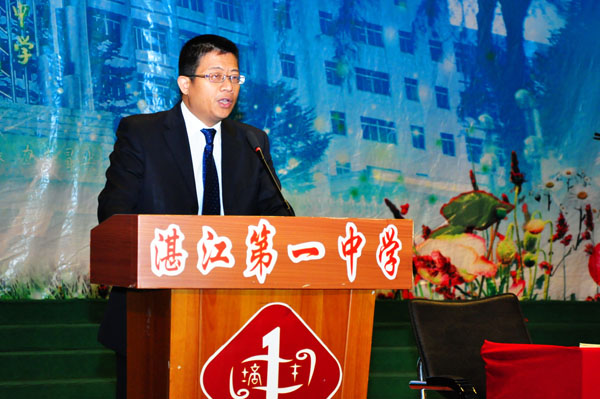 豪情振筆歌新歲,駿馬加鞭奔坦途。2月9日上午,我校在雪卿藝術(shù)館召開新學(xué)期開學(xué)大會,湛江市副市長陳云同志、市委組織部常務(wù)副部長朱華雄同志、市教育局局長林濤同志蒞臨大會,市委組織部常務(wù)副部長朱華雄代表市委宣布鄭軍同志任湛江一中校長、陳鐵軍同志任湛江一中黨委書記。陳云同志代表市政府講話,對楊耀明老校長的工作成績給予高度評價(jià),對鄭軍校長、陳鐵軍書記履新給予充分肯定,并希望新校長、新書記帶領(lǐng)新班子團(tuán)結(jié)全體教職工,將湛江一中辦得更好,為湛江教育繼續(xù)發(fā)揮龍頭骨干作用。楊耀明老校長對全校教職工的支持再一次表示了衷心的感謝,并祝愿湛江一中更上一層樓。鄭軍校長、陳鐵軍書記對市委、市政府、市教育局的關(guān)心和厚愛表示衷心感謝,決心同所有教職工一起共同努力,依托市委、市政府、市教育局的正確領(lǐng)導(dǎo),為辦好人民滿意的教育做出應(yīng)有的貢獻(xiàn)。