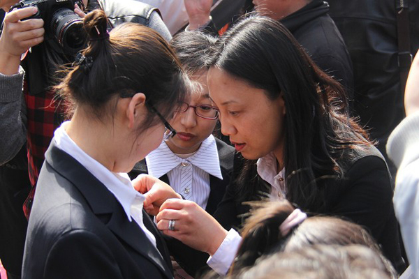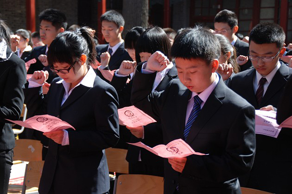 接下來,一段凝聚了全校教職員工與學生祝福與鼓舞的錄音帶給了高三學生一種向前拼搏的力量,“加油!加油!加油!”親切樸實的話語,激勵著高三學生在高考前的最后一段時間中,勇敢前行。最后,學校將圖書《世界上最佳的勵志美文》,作為成人禮物送給了同學們。校黨支部孫建棟書記解讀了這份禮物的意義,學校希望每一篇勵志佳作都能激勵同學們揚起青春的風帆,在閱讀中感受哲理,點燃激情,讓生活更加精彩無限。在成人儀式的尾聲,全體校領導和老師為113名同學佩戴了成人紀念章,希望所有同學,在成長的路上永遠相伴美好的希望,并且敢于擔當,用責任成就夢想。