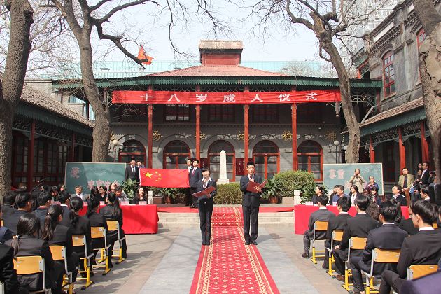 2016年3月18日,我校高三年級114名學(xué)生迎來了十八歲成人儀式。十八歲,是生命旅程中的一個新起點,同學(xué)們將以國家公民的身份,勇敢的承擔(dān)起建設(shè)祖國的責(zé)任!蘆妙副校長代嚴(yán)虹校長致18歲成人寄語并宣布成人決定,全體高三學(xué)生用嘹亮的聲音,在五星紅旗前許下神圣的十八歲成人誓言。隨后,各班學(xué)生以自己精心設(shè)計的互動環(huán)節(jié),表達(dá)了對班主任老師三年相伴、教育的感恩之心,真摯的話語,動聽的歌聲,只為讓班主任感受到學(xué)生的愛。教師與家長代表為同學(xué)們送去了成人寄語。一段凝聚了全校同學(xué)師生祝福語與鼓勵的校園訪談錄帶給了高三學(xué)生一種向前拼搏的力量,激勵著他們在高考前的最后一段時間中,勇敢前行。最后,學(xué)校將一本《盔甲騎士》,作為成人禮物送給同學(xué)們,校黨支部孫建棟書記為大家做了精彩導(dǎo)讀,希望同學(xué)們鼓起勇氣,克服恐懼,擺脫內(nèi)心“盔甲”的束縛,用智慧和毅力,去克服重重障礙,勤于反思,追求新知。 希望全體高三學(xué)子們,昂首闊步!向著青春的舞臺,出發(fā)!最后,全體校領(lǐng)導(dǎo)和老師為高三學(xué)生佩戴了成人紀(jì)念章,2016屆十八歲成人儀式圓滿結(jié)束。
