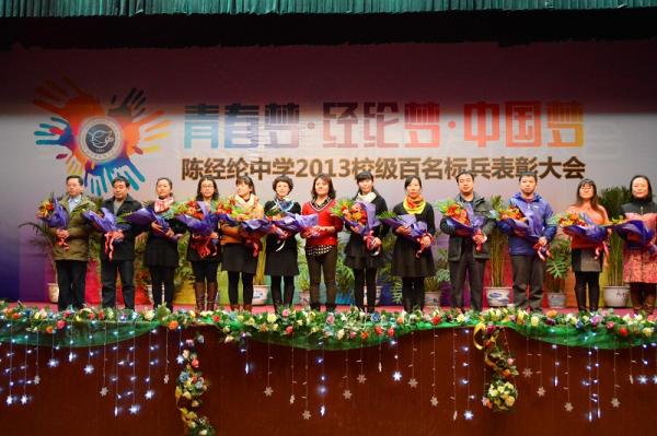 2013年12月30日,陳經(jīng)綸中學本部初中召開“星光燦爛, 感動經(jīng)綸”2013年百名標兵表彰暨新年聯(lián)歡會。陳經(jīng)綸中學校長張德慶、副校長穆潔、于亞平、校長助理劉忠毅、初中主管校長賀小兵、支部書記陶苒、教學主任朱海濤、副主任高殿軍、德育副主任薛金紅出席活動,初中部全體師生與會。