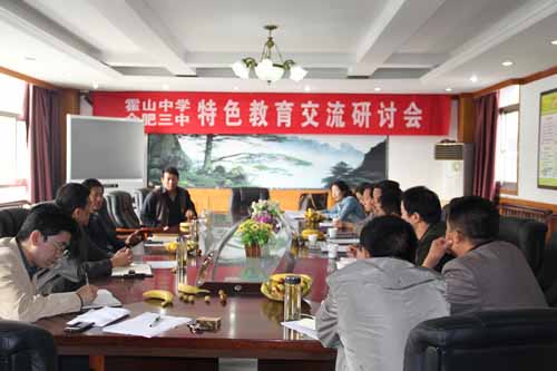 2013年10月16日上午,,安徽省六安市霍山中學(xué)校長張光玉等一行10人來到合肥市第三中學(xué),開展兩個省級示范高中校際間的交流活動,合肥三中校長張國正,副校長梁昌波、冬云和教務(wù)處等領(lǐng)導(dǎo)接待了來訪的客人。