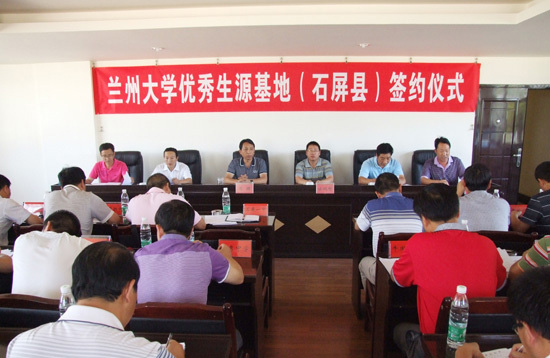 6月14日,石屏縣舉行蘭州大學(xué)優(yōu)秀生源基地建設(shè)簽約儀式,石屏縣第一中學(xué)、石屏縣第二中學(xué)、石屏縣高級(jí)中學(xué)成為蘭州大學(xué)優(yōu)秀生源學(xué)校。石屏縣人民政府副縣長(zhǎng)、蘭州大學(xué)萃英學(xué)院副院長(zhǎng)徐鵬彬,縣教育局領(lǐng)導(dǎo)班子成員,全縣各中學(xué)校長(zhǎng)共40余人參加會(huì)議。