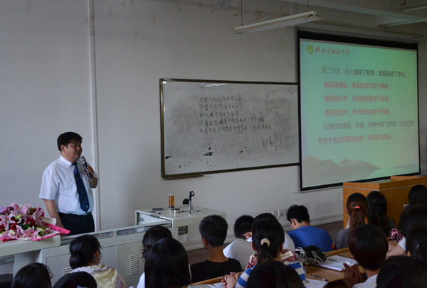 張校長(zhǎng)教學(xué)資歷深厚,管理經(jīng)驗(yàn)豐富,他的報(bào)告以溫家寶總理“教育是心靈與心靈的溝通,靈魂與靈魂的交融,人格與人格的對(duì)話”的名言開場(chǎng),結(jié)合自己30年來(lái)的教育教學(xué)和管理經(jīng)驗(yàn),從當(dāng)前基礎(chǔ)教育教學(xué)實(shí)踐的新形勢(shì)、新課程改革的理念和要求、教師應(yīng)有的知識(shí)儲(chǔ)備和基本素質(zhì)等闡述了如何成為一名優(yōu)秀的中學(xué)教師。報(bào)告會(huì)上,張克強(qiáng)校長(zhǎng)通過(guò)剖析教學(xué)實(shí)踐的具體案例,勉勵(lì)陜師大學(xué)生要樹立高尚的師德,要飽有對(duì)學(xué)生的責(zé)任心,要學(xué)會(huì)做教學(xué)反思,要注重教育教學(xué)研究,深刻闡釋了“教師的智慧可以啟發(fā)學(xué)生的智慧、教師的激情可以點(diǎn)燃學(xué)生的激情、教師的心靈可以感化學(xué)生的心靈、教師的成功可以引領(lǐng)學(xué)生的成功”的深刻含義。報(bào)告中,張校長(zhǎng)還為陜師大學(xué)生提出了許多中肯的建議,鼓勵(lì)他們加強(qiáng)師德修養(yǎng),樹立終身學(xué)習(xí)理念,提高業(yè)務(wù)素質(zhì),做研究型的中學(xué)教師,勉勵(lì)他們堅(jiān)守自己的職業(yè)選擇,無(wú)限忠誠(chéng)于黨和人民的教育事業(yè),兢兢業(yè)業(yè),淡泊名利,積極嘗試,勇于挑戰(zhàn),通過(guò)自身的不懈努力,完美實(shí)現(xiàn)“適應(yīng)期教師——合格教師——成熟教師——骨干教師——學(xué)科帶頭人——專家型教師”的成長(zhǎng)蛻變。