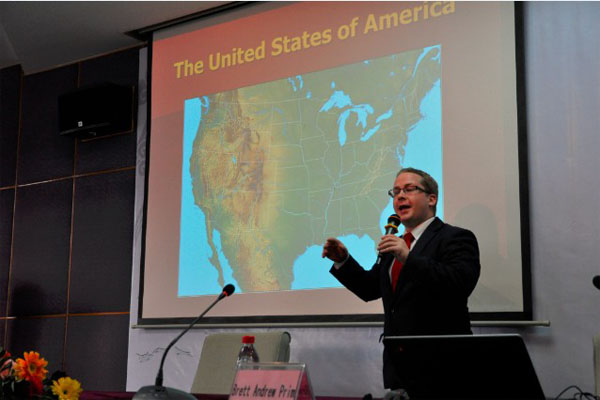 Brett Andrew Prim先生以自己深厚的理論素養(yǎng)與豐富的實踐經(jīng)驗,就美國的教育情況向大家進行了介紹,并對中美教育體制的具體差異進行了分析,極大地開拓了大家的眼界與視野。