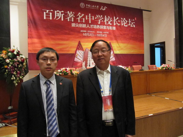 10月3-4日,張文茂校長應(yīng)邀參加了中國人民大學(xué)舉辦的“百所著名中學(xué)校長論壇”,并與人大校長陳雨露就有關(guān)教育問題進(jìn)行了深入交流。
