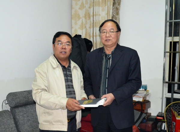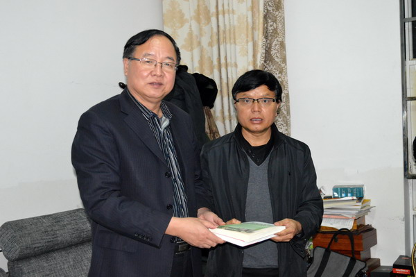 張文茂校長(zhǎng)向高家余校長(zhǎng)贈(zèng)送我校出版的新書(shū)