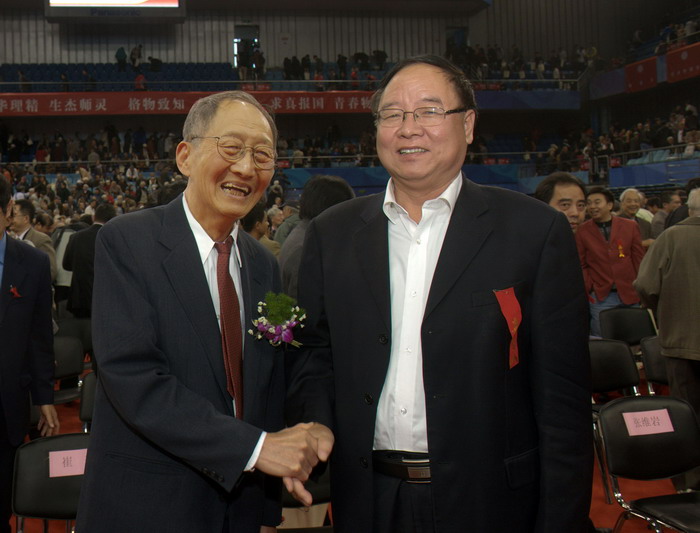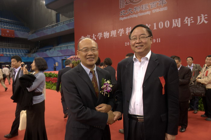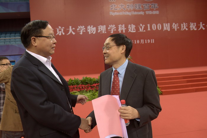 北京大學(xué)物理學(xué)院院長謝心澄與張文茂校長親切握手
