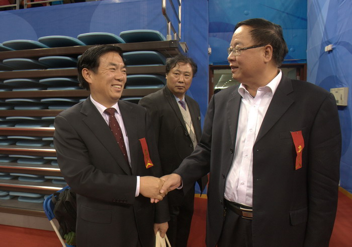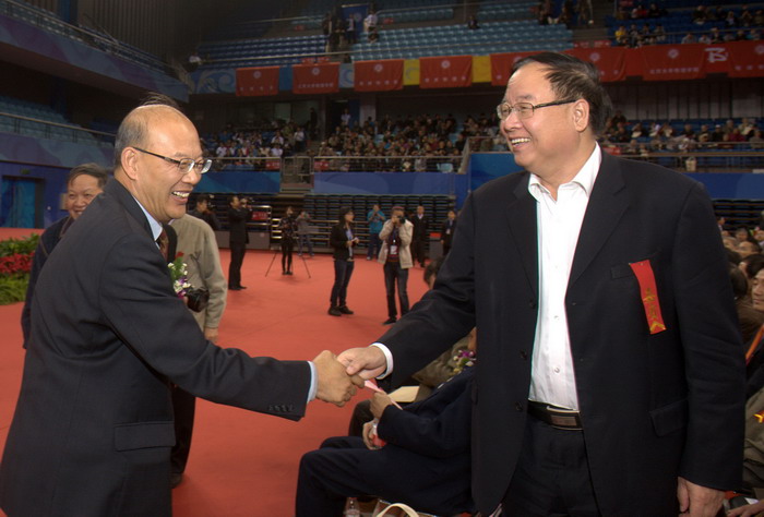北京大學(xué)黨委書記朱善璐與張文茂校長親切握手