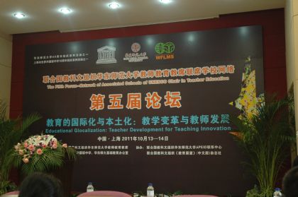 2011年10月14日上午,我校張昕校長受邀出席在上海市徐匯區(qū)世界外國語學(xué)校舉辦的“聯(lián)合國教科文組織華東師范大學(xué)教師教育教席聯(lián)席學(xué)校網(wǎng)絡(luò)第五屆論壇”。此次論壇屬于華東師范大學(xué)60周年校慶系列活動(dòng)之一,論壇主題為“教育的國際化與本土化:教學(xué)變革與教師發(fā)展”。張昕校長在論壇上作題為“地球?qū)W習(xí)村的故事”的演講,主要介紹了我校東校區(qū)融合多元文化、建設(shè)國際社區(qū)、打造地球?qū)W習(xí)村的實(shí)踐和經(jīng)驗(yàn)。