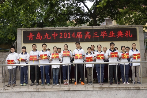 下午3:30,青島九中畢業(yè)生500余名畢業(yè)生相聚在北校操場(chǎng),這是他們高中時(shí)代最后一次聚會(huì)?!案兄x禮賢,讓我們?cè)谶@里展開了所有可能與不可能的夢(mèng)想!”伴隨著《那些花兒》的背景音樂,典禮正式拉開了序幕。掌聲和歡呼注定是這個(gè)典禮最高昂的旋律。