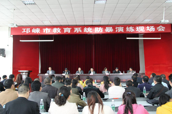 2014年4月25日下午3時,邛崍市教育系統(tǒng)防爆演練在我校舉行。邛崍市宣傳部部長蘇顯奇、副市長毛迪瑜、市教育局局長趙江臨、公安局等領(lǐng)導(dǎo)出席,市各學(xué)校分管安全領(lǐng)導(dǎo)參加。