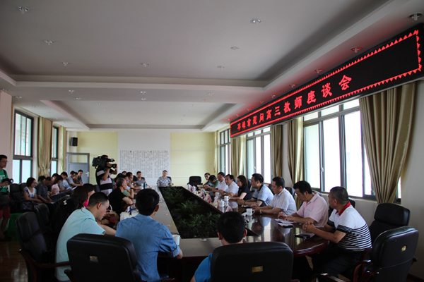 在高三備考進(jìn)入最后沖刺階段的關(guān)鍵時(shí)刻,2014年5月30日上午,市委常委、宣傳部長(zhǎng)舒顯奇、政府副市長(zhǎng)毛迪瑜、市教育局局長(zhǎng)趙江臨等領(lǐng)導(dǎo)看望慰問我校高三教師。市教育局局長(zhǎng)趙江臨主持慰問會(huì)。