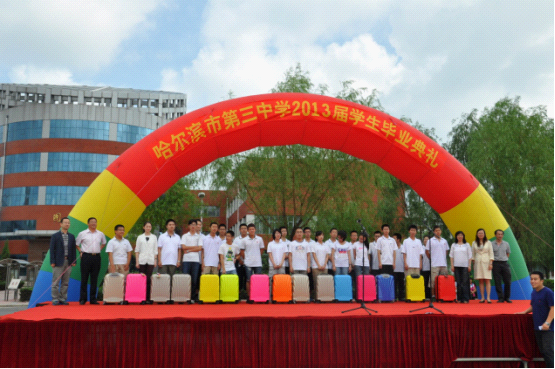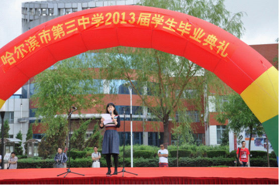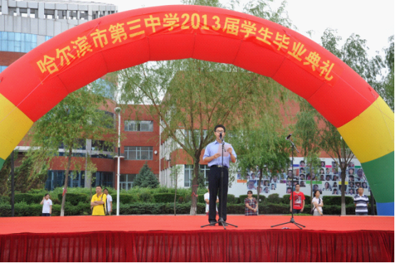 今天,我們在這里舉行 2013 屆畢業(yè)生的畢業(yè)式,我不禁回想起你們在 2010 年 8 月到哈三中的情景。在三中,你們度過了三年的青春時光,我作為你們的師長能伴你們同行,倍感榮幸!