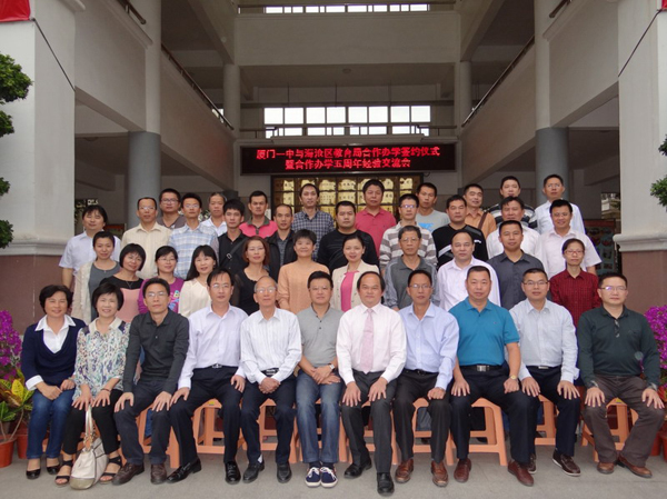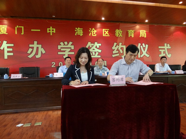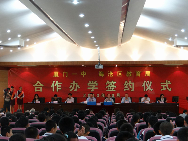 廈門一中發(fā)展歷程中的又一個(gè)歷史性時(shí)刻,廈門一中與海滄區(qū)教育局續(xù)簽合作辦學(xué)儀式于2013年10月30日上午在廈門一中海滄分校隆重舉行,廈門一中與海滄區(qū)教育局在經(jīng)過五年愉快合作,取得輝煌成就之后,繼續(xù)攜手合作發(fā)展海滄教育。參加儀式的有市教育黨工委副書記郭慶俊、海滄區(qū)宣傳部部長張谷、市教育局副局長任勇、廈門一中校長周君力、海滄區(qū)人大副主任王明德、海滄區(qū)政協(xié)副主席葉莎莉、海滄區(qū)教育局局長陸曉紅等領(lǐng)導(dǎo),廈門一中各分校領(lǐng)導(dǎo)老師和海滄分校師生400余人一同見證了這一歷史性時(shí)刻。