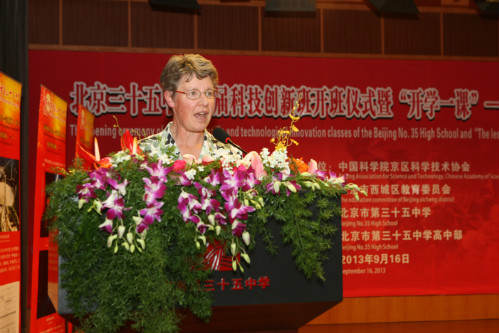 2013年9月16日,對(duì)于我??萍及嗟膶W(xué)生來說是一個(gè)特別的日子。不僅因?yàn)檫@一天是我校第四屆科技班的開班儀式,更因?yàn)檫@一天有著“脈沖星之母”稱號(hào)的國(guó)際著名天文學(xué)家、我校名譽(yù)校長(zhǎng)貝爾女士將出席儀式,并給孩子們帶來精彩的一課。
