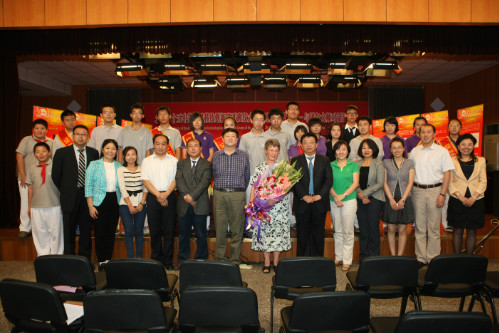 在貝爾女士正式講座之前。師生們首先觀看了一段描寫貝爾女士科學(xué)生涯的的短片,將同學(xué)們的思維引向了浩瀚的宇宙。在大家意猶未盡時(shí)候,貝爾女士緩緩走上主席臺(tái)。開始了她神秘、精彩而又熱情洋溢的講座。貝爾女士講座的題目是“人類在育種中的位置”面帶微笑,用大量圖片、科學(xué)史實(shí)甚至民間傳說,為我們展現(xiàn)了一個(gè)不一樣的宇宙,極大的激發(fā)了同學(xué)們對(duì)于人類、對(duì)于宇宙的思考。其后,學(xué)生代表向貝爾大師獻(xiàn)花,表達(dá)了同學(xué)們對(duì)貝爾女士的敬愛之情。朱建民校長(zhǎng)代表學(xué)校給貝爾大師贈(zèng)送我校教師親筆寫的書法作品。接下來,貝爾大師與學(xué)生用英文進(jìn)行了互動(dòng)。她風(fēng)趣而巧妙的解答了學(xué)生們的很多疑惑。當(dāng)問到“科學(xué)與宗教是否沖突時(shí)”,貝爾女士非常興奮的說這是一個(gè)好問題,因?yàn)樨悹栂嘈趴茖W(xué)信仰和宗教信仰同為對(duì)未知世界的探索,我們不能驗(yàn)證的東西,不可以妄下結(jié)論。向我們展現(xiàn)了一位科學(xué)家嚴(yán)謹(jǐn)而率真的生活態(tài)度。全場(chǎng)響起了雷鳴般的掌聲。