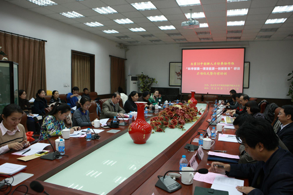 2013年11月28至12月3日,我校朱建民校長(zhǎng)領(lǐng)隊(duì)“北京市第三十五中學(xué)創(chuàng)新人才培養(yǎng)協(xié)作體”(以下簡(jiǎn)稱“三十五中協(xié)作體”)骨干教師赴湖北、江蘇開展以“科學(xué)探案”、“清潔能源”、“創(chuàng)新教育”為主題的集中研訓(xùn)。此行研訓(xùn)共17個(gè)單位,40名專家、領(lǐng)導(dǎo)、教師參與,包括“行前培訓(xùn)”、“集中研訓(xùn)”、“總結(jié)交流研討會(huì)”三個(gè)階段,成果匯總在《研訓(xùn)手冊(cè)》、《研訓(xùn)成果集》兩本書上。