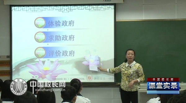 馬玉靜老師以唐山舉辦世界園藝博覽會(huì)為開篇,創(chuàng)設(shè)真實(shí)的教學(xué)情景。通過世博會(huì)的籌備工作,從體驗(yàn)政府、求助政府和評價(jià)政府三方面入手,讓學(xué)生親身體會(huì)唐山市政府的職能履行情況。