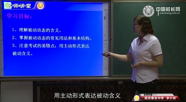 李小俠老師通過進一步學(xué)習(xí)語法被動語態(tài),引導(dǎo)學(xué)生來理解被動語態(tài)的含義,要求學(xué)生掌握其常見用法和基本結(jié)構(gòu),同時還要注意考試的易錯點。