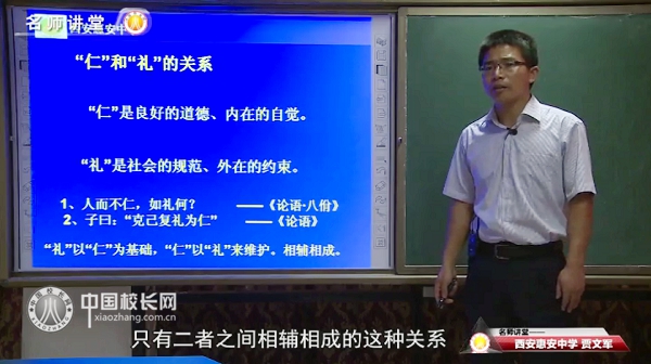 提到“仁”大家最先想到的就是孔子了。孔子是我國偉大的思想政治家,賈文軍老師利用不同的案例,從不同的角度深度解讀了孔子“仁”和“禮”在古代以及現(xiàn)代方方面面起的重要作用。揭示“禮”以“仁”為基礎,“仁”以“禮”來維護,倆者之間相輔相成的關系。