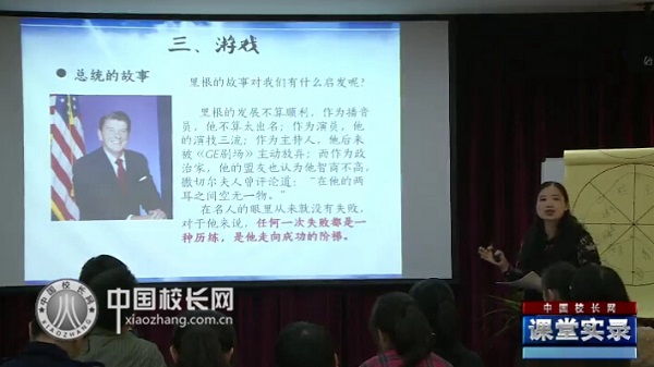 顧維紅老師通過兩人一組的游戲環(huán)節(jié),來講述總統(tǒng)里根的故事,因?yàn)樵诿说难劾飶膩砭蜎]有失敗,而對于他來說,任何一次失敗都是一種歷練,都是他走向成功的階梯。