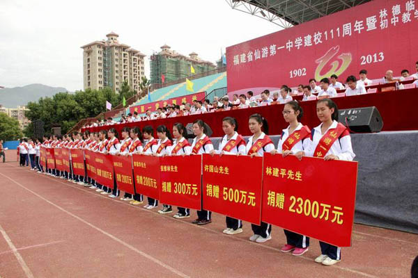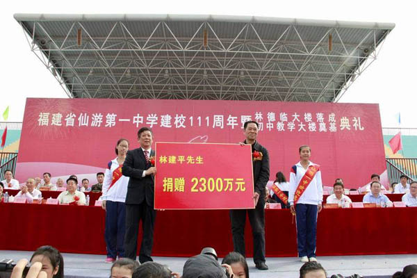 莆田武夷房地產(chǎn)開發(fā)有限公司董事長(zhǎng)林建平向仙游一中捐贈(zèng)2300萬元