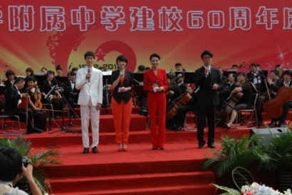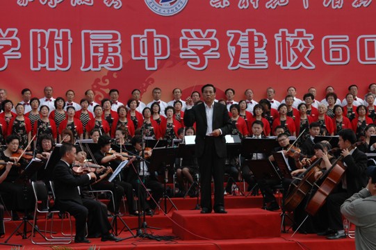昨天的建校60周年慶典上,遼師附中校園里處處洋溢著溫馨的氣氛。老校友們久別重逢,相擁而泣,一位老校友還坐著輪椅來為母校慶祝生日;學校還派出了60余名小記者采訪前來參加慶典的校友們,校友們對昔日母校美好時光的回顧和感慨,讓小記者們?yōu)橹袆印|師附中68屆畢業(yè)生王永堂今年60多歲了,昨天,他和80多位老校友們一齊登臺,為母校獻上了《老師我想你》、《復興之路》等大合唱。王永堂告訴記者,聽說母校要搞60歲生日慶典,老校友從4月份起就開始每周排練幾次,大家希望母校的明天更美好。