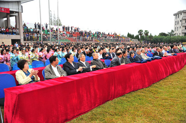 9點30分,慶?;顒诱介_始。大會由黨委書記曹光明同志主持。校長季仲平同志向領(lǐng)導(dǎo)、校友致辭,回顧了學(xué)校的發(fā)展歷程,介紹了學(xué)校的辦學(xué)業(yè)績,闡述了學(xué)校的教育夢想。校友代表、九七屆校友、南京大學(xué)博士生導(dǎo)師曹毅教授,教師代表、全國模范教師張淳老師,學(xué)生代表、高三(18)班張潔同學(xué)分別作了發(fā)言。最后,與會人員觀看了由在校師生和部分校友表演的九十校慶專題文藝演出。
