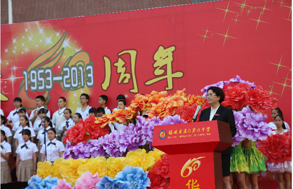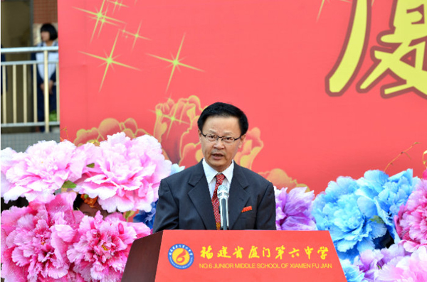 市教育局賴菡局長代表市委教育工委、市教育局致辭。他首先對廈門六中60華誕表示祝賀。賴局長高度評價六中在教育、教學(xué)、科研各個方面的業(yè)績。他說,六十年來,廈門六中在黨和政府的正確領(lǐng)導(dǎo)下,全面貫徹黨的教育方針,堅持社會主義辦學(xué)方向,弘揚艱苦奮斗的光榮傳統(tǒng),發(fā)揚“精誠團(tuán)結(jié)、頑強(qiáng)拼搏、敢為人先、永不滿足”的精神,不斷謀求新發(fā)展,實現(xiàn)新跨越。六十年來,廈門六中創(chuàng)造并積累了豐富的辦學(xué)經(jīng)驗,形成了優(yōu)良的校風(fēng)和鮮明的辦學(xué)特色,取得驕人的辦學(xué)業(yè)績,成為廈門教育的優(yōu)質(zhì)資源。十多年來,廈門六中以進(jìn)入省一級達(dá)標(biāo)完中行列為新的起點,繼續(xù)堅持全面實施素質(zhì)教育,不斷豐富和建設(shè)校園文化,取得了新的快速發(fā)展。教師隊伍素質(zhì)進(jìn)一步提高,為學(xué)校發(fā)展提供持續(xù)發(fā)展動力;教學(xué)質(zhì)量穩(wěn)步提升,贏得了社會的廣泛贊譽(yù);辦學(xué)特色鮮明突出,起到了很好的示范作用。他勉勵六中以校慶60周年為契機(jī),繼承和發(fā)揚優(yōu)良傳統(tǒng),與時俱進(jìn)、扎實工作,不斷探索新道路,創(chuàng)造新成果,為我市教育事業(yè)再立新功。