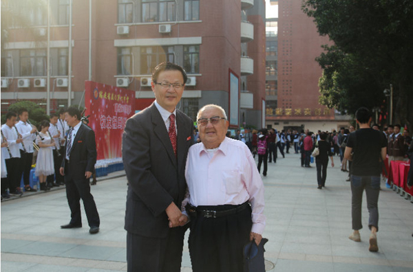 本市著名文史專家、老教師洪卜仁來了。洪老祝賀六中,他說“六中人才濟(jì)濟(jì)!”今天,老三屆來了400多人,為了這次慶典,他們編輯出版了《咱們六中老三屆》一書,贈送母校,贈送香港校友會。59屆原浙江省體育局局長陳培德校友特地從杭州回來,他一走進(jìn)校門就說“氣氛很好!很熱烈!”“我看了《廈門日報》從草根到名校,定位很準(zhǔn)確,六中是草根學(xué)校,是素質(zhì)學(xué)校,我就是在素質(zhì)教育下成長?!?6屆陳玉東校友說,我們學(xué)校還有一個特色,一家子“六中人”,有“夫妻同六中”, 也有“兄弟、父子同六中”的……