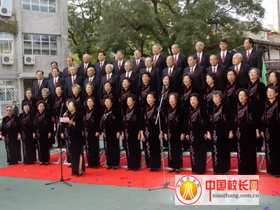 花甲之年的歷屆老校友組成的合唱團為校慶助興