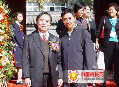 記者與劉志毅校長在學校門前合影