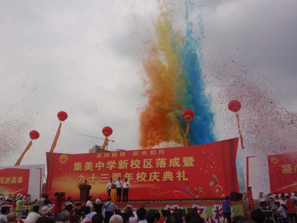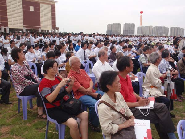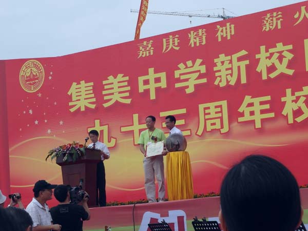 大會(huì)由李聰明副校長(zhǎng)主持,我校原校長(zhǎng)劉衛(wèi)平、現(xiàn)任校長(zhǎng)莊小榮,市教育局長(zhǎng)賴函等先后在大會(huì)上做了熱情洋溢的講話。新校區(qū)落成按鈕啟動(dòng)后,學(xué)校特別安排了來(lái)自香港的校友杜成國(guó)、李鳳翔先生為母校新校區(qū)建設(shè)捐款338萬(wàn)與100萬(wàn)元人民幣的現(xiàn)場(chǎng)捐款儀式(他們所捐款項(xiàng)早已到位,用于新校舍的建設(shè))。兩位校友心系母校、慷慨解囊的善舉深深感動(dòng)著每一個(gè)人。他們?cè)诖髸?huì)上充滿激情的發(fā)言贏得臺(tái)下一陣陣經(jīng)久不息的熱烈掌聲。李聰明副校長(zhǎng)在大會(huì)上還宣讀了為新校區(qū)捐款(共998萬(wàn))的校友名單。一代一代的校友弘揚(yáng)嘉庚精神,愛(ài)國(guó)、愛(ài)鄉(xiāng)、愛(ài)校,尊師重教,捐資助學(xué),無(wú)私奉獻(xiàn)。