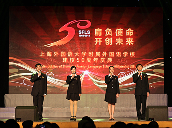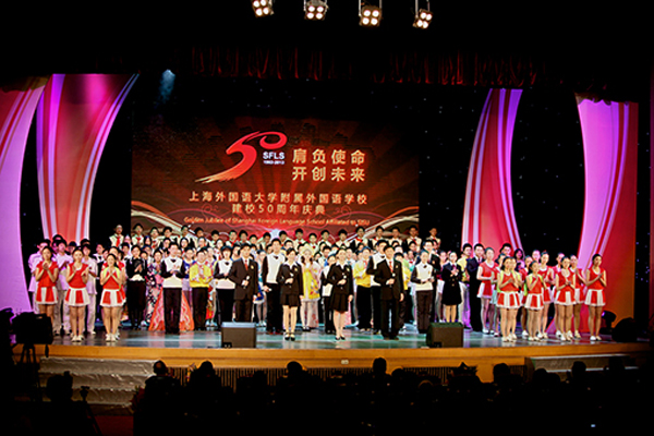 在悠揚(yáng)的校歌合唱《飛向遠(yuǎn)方》聲中,上海外國語大學(xué)附屬外國語學(xué)校50周年慶典大會圓滿結(jié)束。