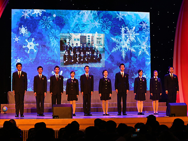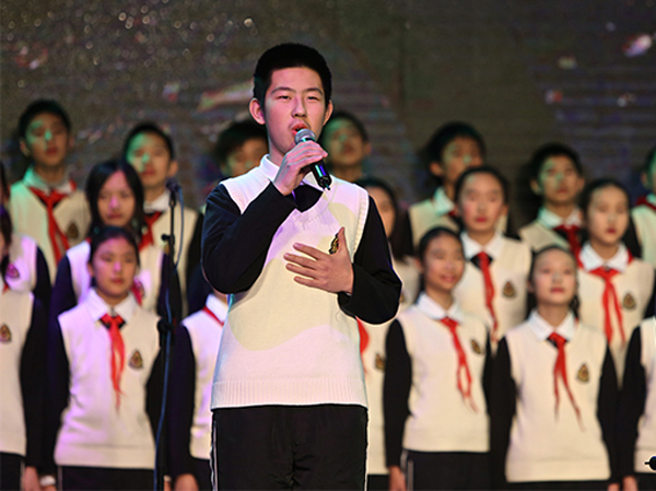 接著七位老校友代表上臺用詩歌表達(dá)他們對附中七年青春年華的回憶,也感慨在校七年的充實(shí)與收獲。其后熱情奔放的學(xué)生表演把慶典大會又推入新的高潮。