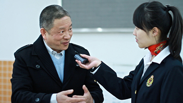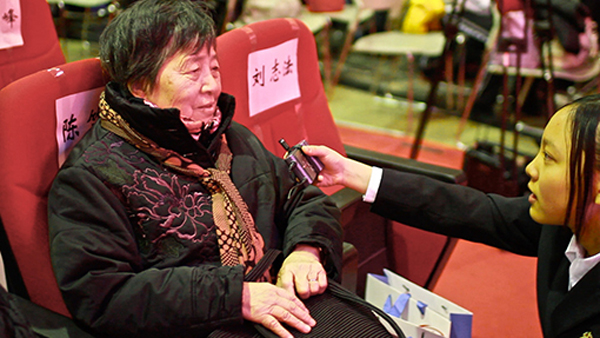 我校學(xué)生電視臺記者采訪老教師陳竺英