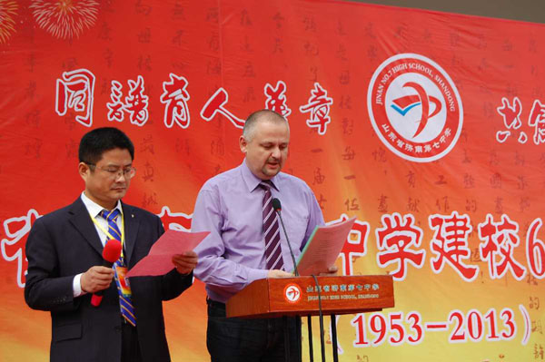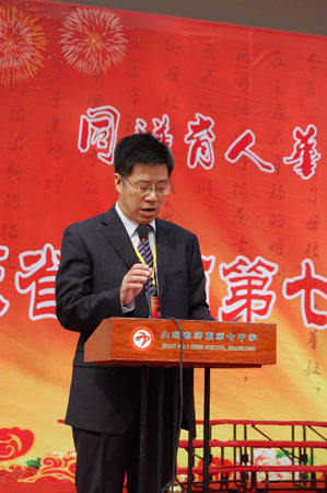 9點30分,慶典大會在嘹亮的國歌聲中拉開帷幕。首先,濟南七中校長蘆文武發(fā)表致辭;隨后濟南市教育局黨委副書記王春光發(fā)表講話,對我校六十年發(fā)展歷程中的工作與貢獻做出肯定,并對我校未來發(fā)展予以誠摯的祝福;作為我校國際教育交流合作的姊妹學校,日本和歌山縣立橋本高等學校、捷克奧藤文法學校也派代表專程趕來參加慶祝大會并發(fā)表講話祝賀我校六十華誕。