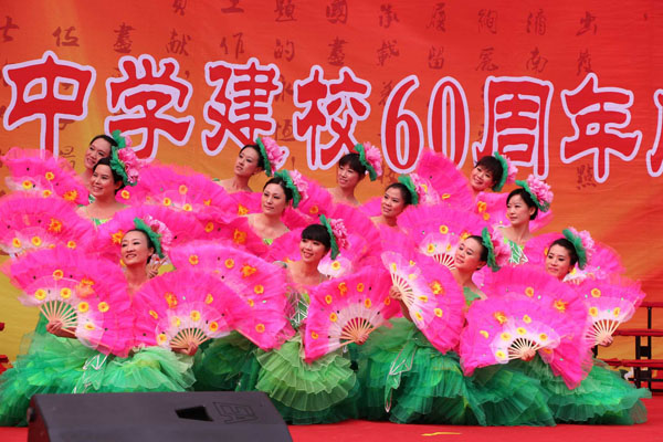 10點,“同譜育人華章,共創(chuàng)美好明天”——慶祝濟南七中建校60周年文藝演出正式開始。本次演出,所有演員都是在校師生,他們在課余時間精心排練,反復(fù)練習,傾情演繹,用真誠的歌聲和曼妙的舞姿表達七中學子對母校的深厚情誼和真切祝福。整齊而富有活力的團體操,氣勢恢宏的大合唱,編排精美的舞蹈,深情而意蘊悠長的詩歌朗誦,無不顯現(xiàn)出今天的濟南七中昂揚向上的精神面貌和七中學子全面發(fā)展的綜合素養(yǎng)。11點30分慶?;顒釉谠娎收b《筑夢七中》中圓滿結(jié)束。
