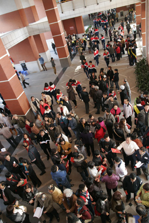 一條條大紅橫幅點(diǎn)燃了學(xué)子的激情。蒼蒼白發(fā)、學(xué)術(shù)卓著的老校友來(lái)了,才華滿(mǎn)懷、衣錦還鄉(xiāng)的海外學(xué)子來(lái)了,朝氣蓬勃、青春激蕩的青年才俊來(lái)了……不論認(rèn)識(shí)與否,人們都激動(dòng)地互稱(chēng)校友,紛紛握手問(wèn)候,深情相擁。當(dāng)老校友們邂逅十幾年、幾十年甚至半個(gè)世紀(jì)以來(lái)未曾謀面的同窗時(shí),個(gè)個(gè)像少男少女一樣蹦跳著、歡笑著,感慨萬(wàn)千、老淚縱橫!