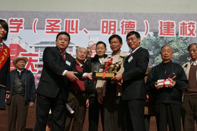會(huì)場(chǎng)里心潮澎湃,會(huì)場(chǎng)外激情蕩漾?;▓F(tuán)錦簇的校園里,三中像一位容光煥發(fā)的百歲老人,招來(lái)群賢畢至。曾經(jīng)的和今天的三中人或探訪(fǎng)過(guò)去的教師和課室、或參觀(guān)新落成的樓舍,在校園里尋找著記憶和新知的對(duì)接。