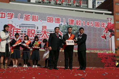 一個(gè)半世紀(jì)櫛風(fēng)沐雨,一百四十五年上下求索。是新中國(guó)的成立、各級(jí)領(lǐng)導(dǎo)的關(guān)懷使三中得以迅速崛起,把握住了一次次歷史性機(jī)遇,帶來(lái)一次次大發(fā)展。三中校友會(huì)會(huì)長(zhǎng)、三中老校長(zhǎng)馬毓鈞代表三中師生深情地說(shuō):"目睹了三中的滄桑巨變,見(jiàn)證了三中的成就與輝煌,我們感到非常的幸福、無(wú)比的自豪,更感到責(zé)任的重大。"