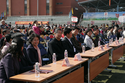12月7日上午10點(diǎn),慶祝廣州三中建校145周年慶典在學(xué)校足球場(chǎng)隆重舉行。鼓號(hào)齊鳴,歡呼聲、掌聲,此起彼伏!廣東教育學(xué)會(huì)副會(huì)長(zhǎng)、原廣東省教育廳副廳長(zhǎng)劉達(dá)中,廣州市政協(xié)副主席郭錫齡,廣州市教育局副局長(zhǎng)陳茂林,中共越秀區(qū)委副書(shū)記、區(qū)長(zhǎng)武延軍,中共越秀區(qū)委副書(shū)記李志昌等領(lǐng)導(dǎo)出席慶祝大會(huì)。同時(shí)出席慶祝大會(huì)的還有廣州市書(shū)法家協(xié)會(huì)主席連登,廣州市招生辦主任吳強(qiáng),中共越秀區(qū)委常委、區(qū)委辦公室主任鐘俊鳴,中共越秀區(qū)委常委、區(qū)委宣傳部長(zhǎng)劉梅,越秀區(qū)人大常委會(huì)副主任廖鳴和、朱健強(qiáng),越秀區(qū)人民政府副區(qū)長(zhǎng)于欣偉、陳大躍,越秀區(qū)政協(xié)副主席周喬建,原越秀區(qū)人大副主任、副區(qū)長(zhǎng)謝慈保,原東山區(qū)副區(qū)長(zhǎng)潘貽璋,越秀區(qū)教育局黨委書(shū)記鄒春燕,越秀區(qū)司法局黨委書(shū)記鄭自力,越秀區(qū)文化局黨委書(shū)記陳松,越秀區(qū)教育局副局長(zhǎng)劉小明、趙佩霞、林海英,越秀區(qū)教育局各科室領(lǐng)導(dǎo),省內(nèi)外各兄弟學(xué)校領(lǐng)導(dǎo),三中歷屆校友,三中在職及離退休教師等等。各級(jí)領(lǐng)導(dǎo)、各界友好人事、三中歷屆校友紛紛來(lái)到現(xiàn)場(chǎng),向三中這所百年老校獻(xiàn)上真誠(chéng)美好的祝愿。