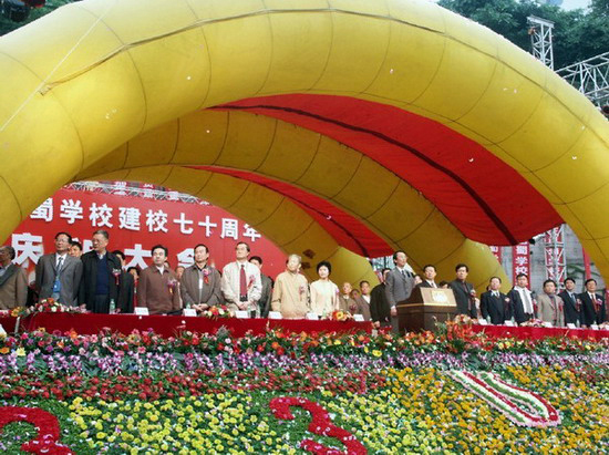10月6日,被教育部評定為“中華名校”的重慶巴蜀中學(xué),迎來建校70周年慶典,來自海內(nèi)外的5000多名校友歡聚一堂,共慶母校70華誕。重慶市領(lǐng)導(dǎo)黃鎮(zhèn)東、王鴻舉、劉志忠、邢元敏、黃奇帆、張宗海等分別發(fā)來賀信或來到學(xué)校,祝愿巴蜀中學(xué)再創(chuàng)輝煌。