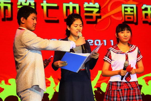 晚會上,學(xué)生社團(tuán)、教師社團(tuán)精彩紛呈地展示,令晚會高潮迭起,掌聲、喝彩聲此起彼伏。教師、學(xué)生誓詞的誦讀,讓七中的文化精粹得以傳承并發(fā)揚(yáng)光大,在場的所有觀者無不動容。