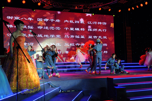 師生綜合展示活動(dòng)以老師們創(chuàng)編的《育才賦》為線索,以綜合文藝演出的方式,全面展示育才學(xué)?!皯n天下、啟心智、揚(yáng)優(yōu)長(zhǎng)”的學(xué)生培養(yǎng)成果。展示活動(dòng)共分三個(gè)篇章:第一篇章《圣地紅燭,薪火傳邦》,第二篇章《皇苑建校,鵬翼初翔》,第三篇章《啟智揚(yáng)長(zhǎng),桃李芬芳》。展示活動(dòng)全面體現(xiàn)了育才師生的風(fēng)采,不僅有很高的藝術(shù)水準(zhǔn),更是通過這樣的展示活動(dòng),使全體師生銘記歷史,總結(jié)學(xué)校辦學(xué)經(jīng)驗(yàn),明確目標(biāo),凝聚了下一步發(fā)展的力量。